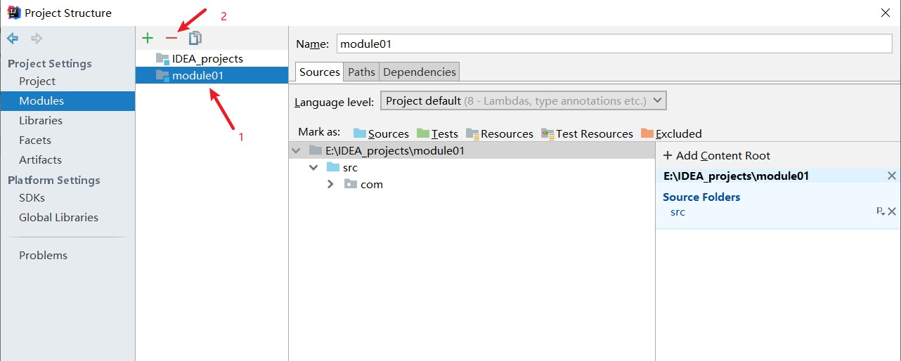 选中需要删除的模块 -> 右击 -> Open Module Settings