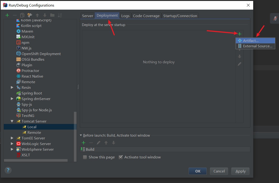 catalina run,能运行则表示配置成功在IDEA中,进入Run -> Edit Configurations -> Defaults -> 找到tomcat -> local -> 选择tomcat安装路径