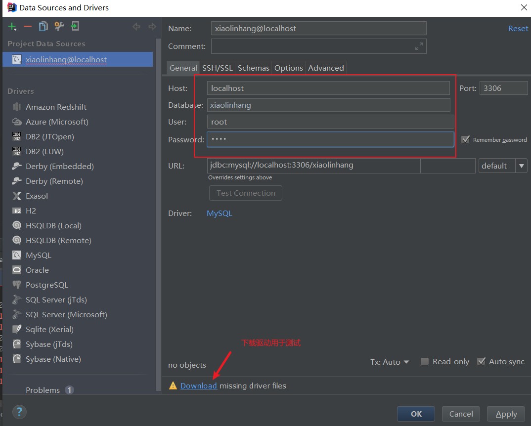 - 输入参数,下载必要驱动,然后点击Test Connection即可测试是否连接成功