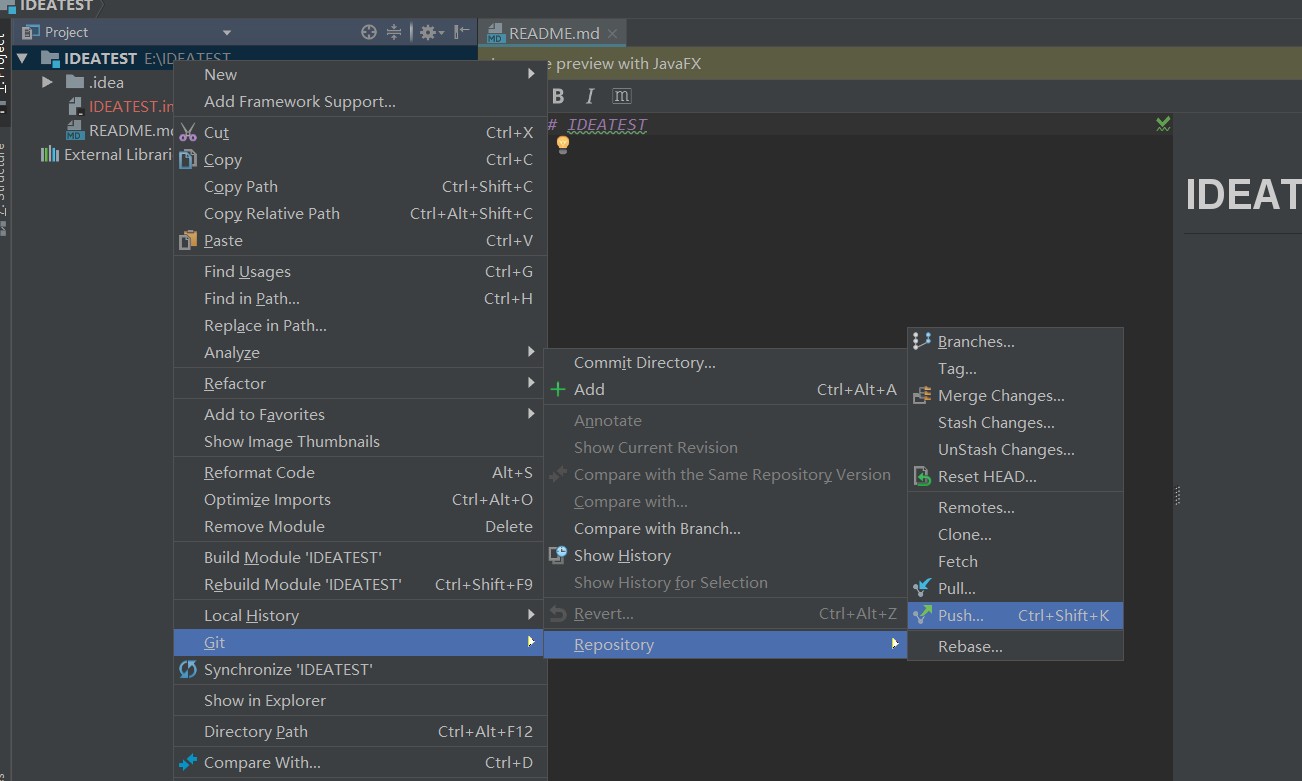 - 关联github,如果无法使用密码登录,去github->Setting-> developer settings创建一个token,选项全选,然后复制token到idea中